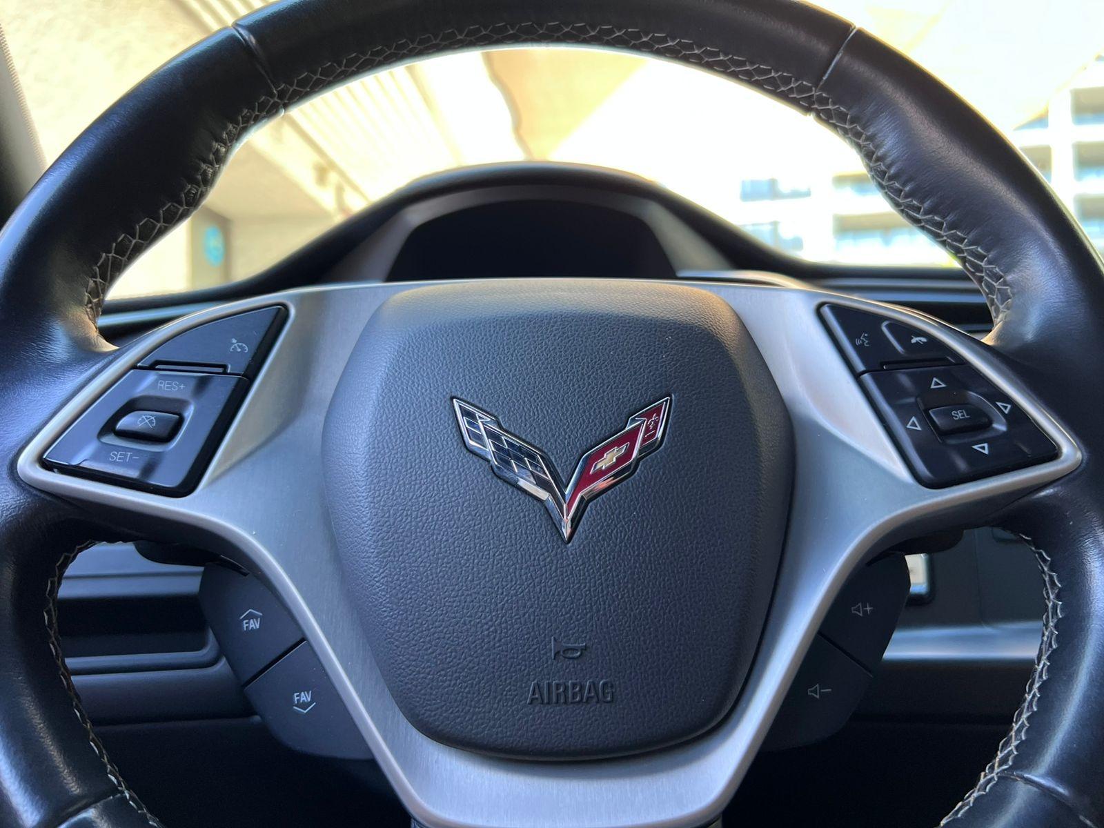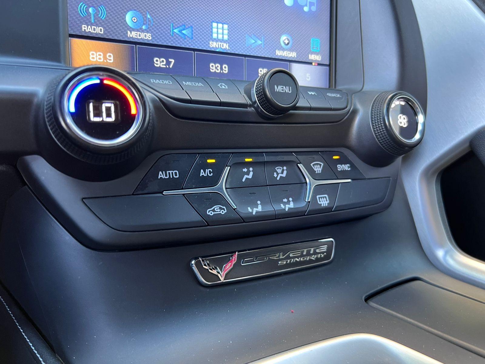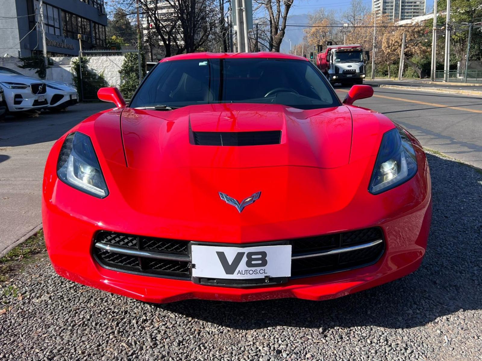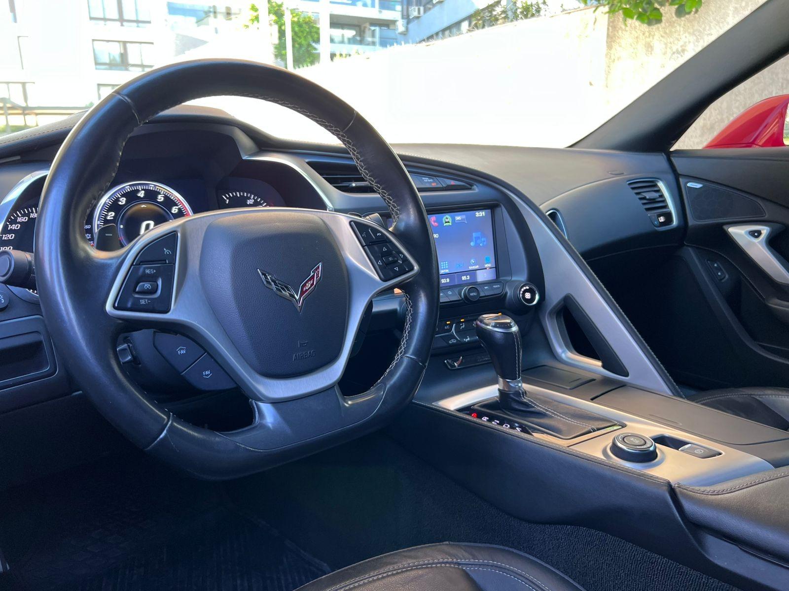 Versión C7 Stingray Coupe, motor ocho cilindros 6.200 CC con 460 HP, tracción trasera, caja de cambios automática con paddle shift, modos de conducción, volante multifuncional con velocidad crucero, computador a bordo, tablero digital, pantalla touch con cámara trasera de estacionamiento, climatizadores delanteros independientes, molduras de aluminio, sistema de audio alta fidelidad Bose, tapiz de cuero, asientos eléctricos.