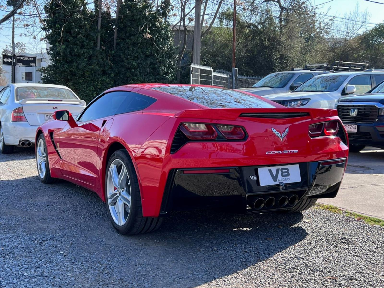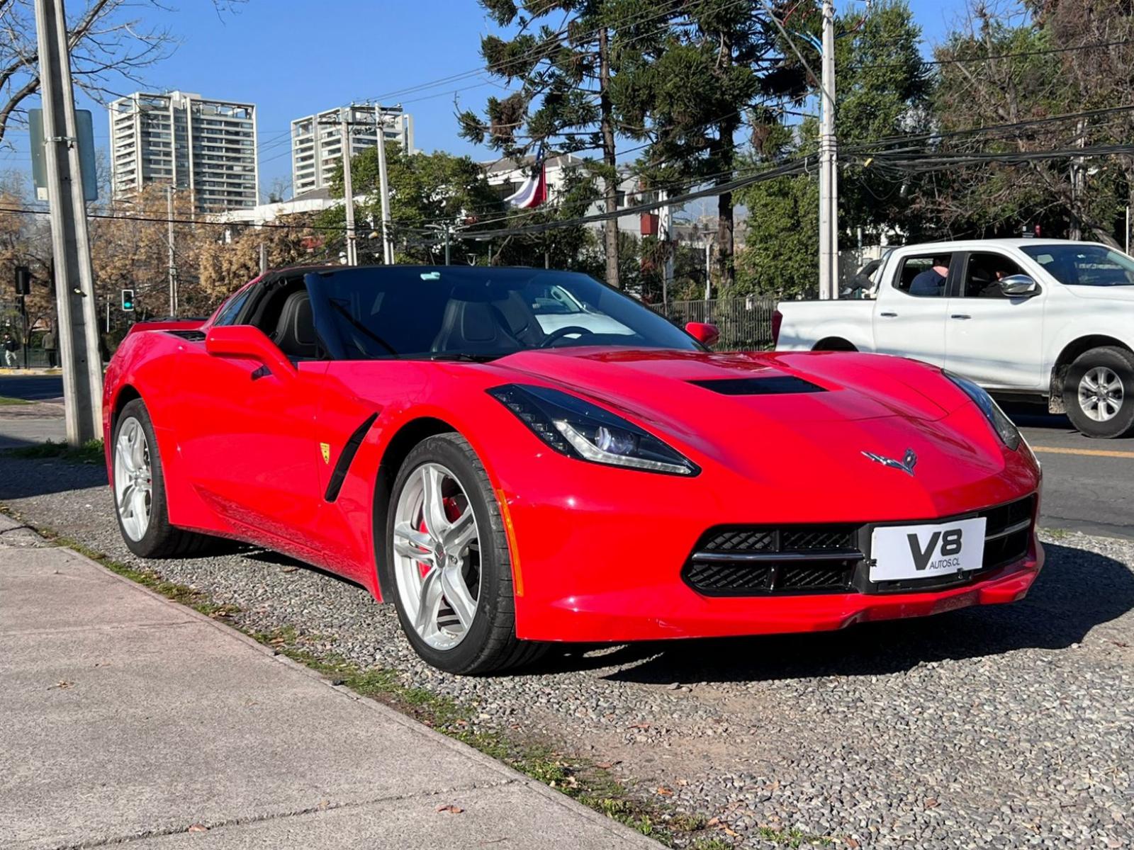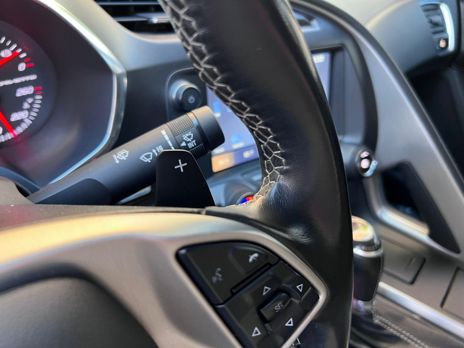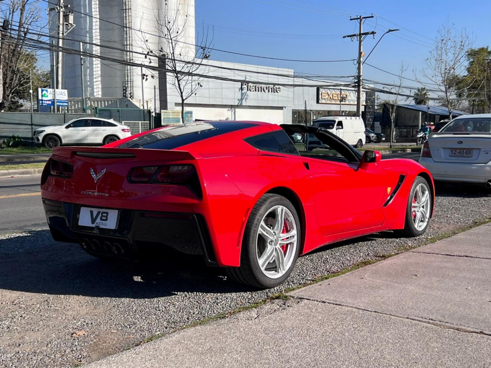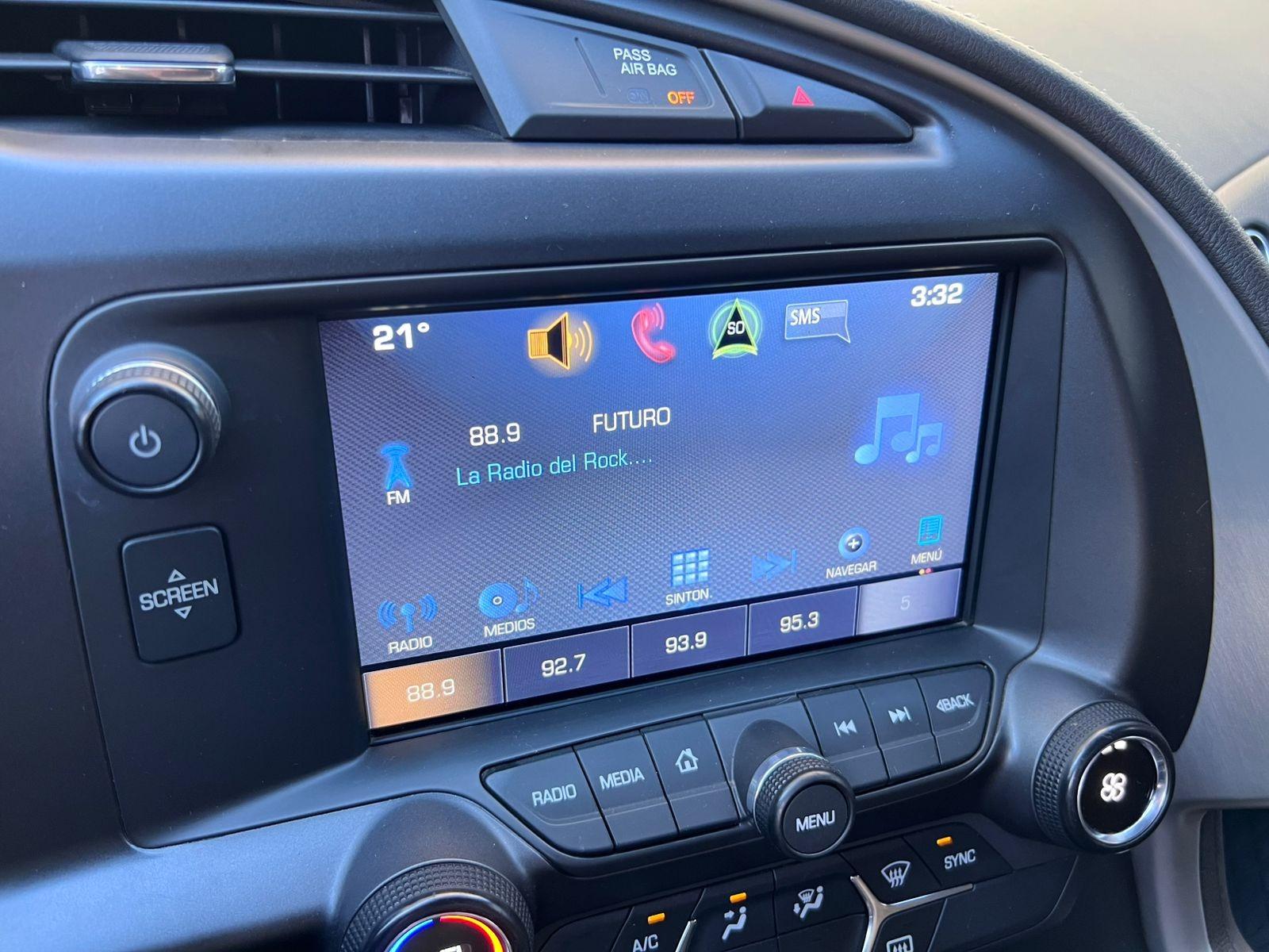 Versión C7 Stingray Coupe, motor ocho cilindros 6.200 CC con 460 HP, tracción trasera, caja de cambios automática con paddle shift, modos de conducción, volante multifuncional con velocidad crucero, computador a bordo, tablero digital, pantalla touch con cámara trasera de estacionamiento, climatizadores delanteros independientes, molduras de aluminio, sistema de audio alta fidelidad Bose, tapiz de cuero, asientos eléctricos.