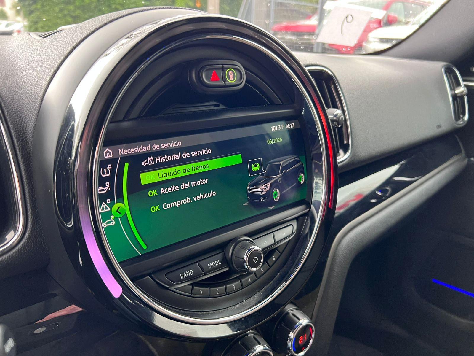 Mantenimiento al día, versión John Cooper Works, motor cuatro cilindros 2.000 CC Turbo, modos de conducción, caja de cambios automática ocho velocidades, tracción integral permanente ALL4, volante multifuncional con velocidad crucero y reconocimiento por voz, computador a bordo, Head Up Display, molduras piano black, pantalla con cámara trasera de estacionamiento, sensores delanteros y navegador, Bluetooth, climatizadores delanteros independientes, botón de encendido start-stop, sistema de audio alta fidelidad Harman Kardon.